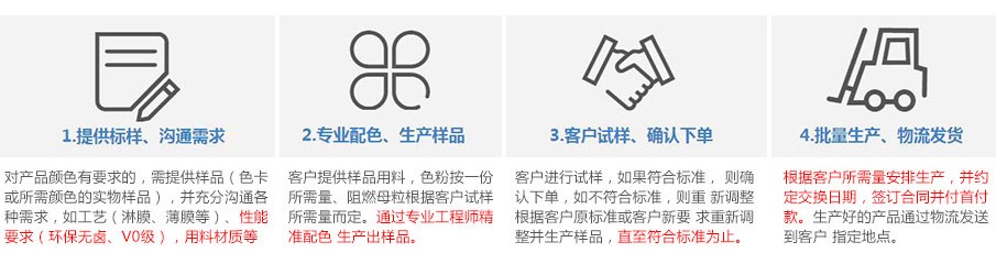 主營(yíng)產(chǎn)品有:色母粒、功能母粒、抗老化抗紫外線(xiàn)、抗靜電母粒、阻燃母粒公司以磷系阻燃母粒、氮系阻燃母粒、溴系阻燃母粒、阻燃改性塑料為主,PP環(huán)保阻燃母粒、PE阻燃母粒、PC透明無(wú)鹵阻燃母粒、PET透明無(wú)鹵阻燃母粒、PA無(wú)鹵阻燃母粒、廣泛應(yīng)用于:......